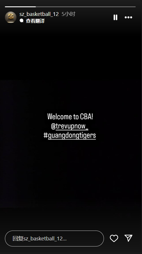 “Welcome to CBA!@trevupnow #guangdongtigers”