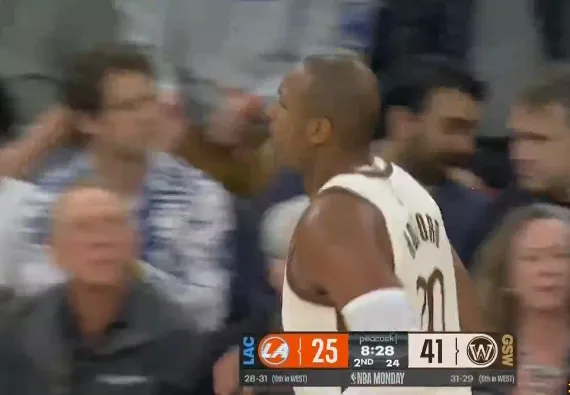 第二节比赛中,霍福德底角三分也投进,勇士第二节41-25领先16分打停快船。