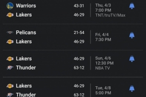 赛后詹姆斯自媒体BronMuse晒出了湖人最后7场比赛对手,分别是:勇士、鹈鹕、雷霆(2次)、独行侠、火箭、开拓者。